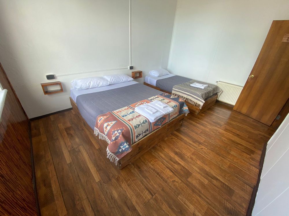 Cómoda habitación con 1 cama single y 1 cama matrimonial, ideal para familias, cuenta con acceso a cualquiera de los 5 baños compartidos de la hostal, incluye desayuno americano, ropa de cama, toalla y por su puesto la mejor ubicación de Punta Arenas